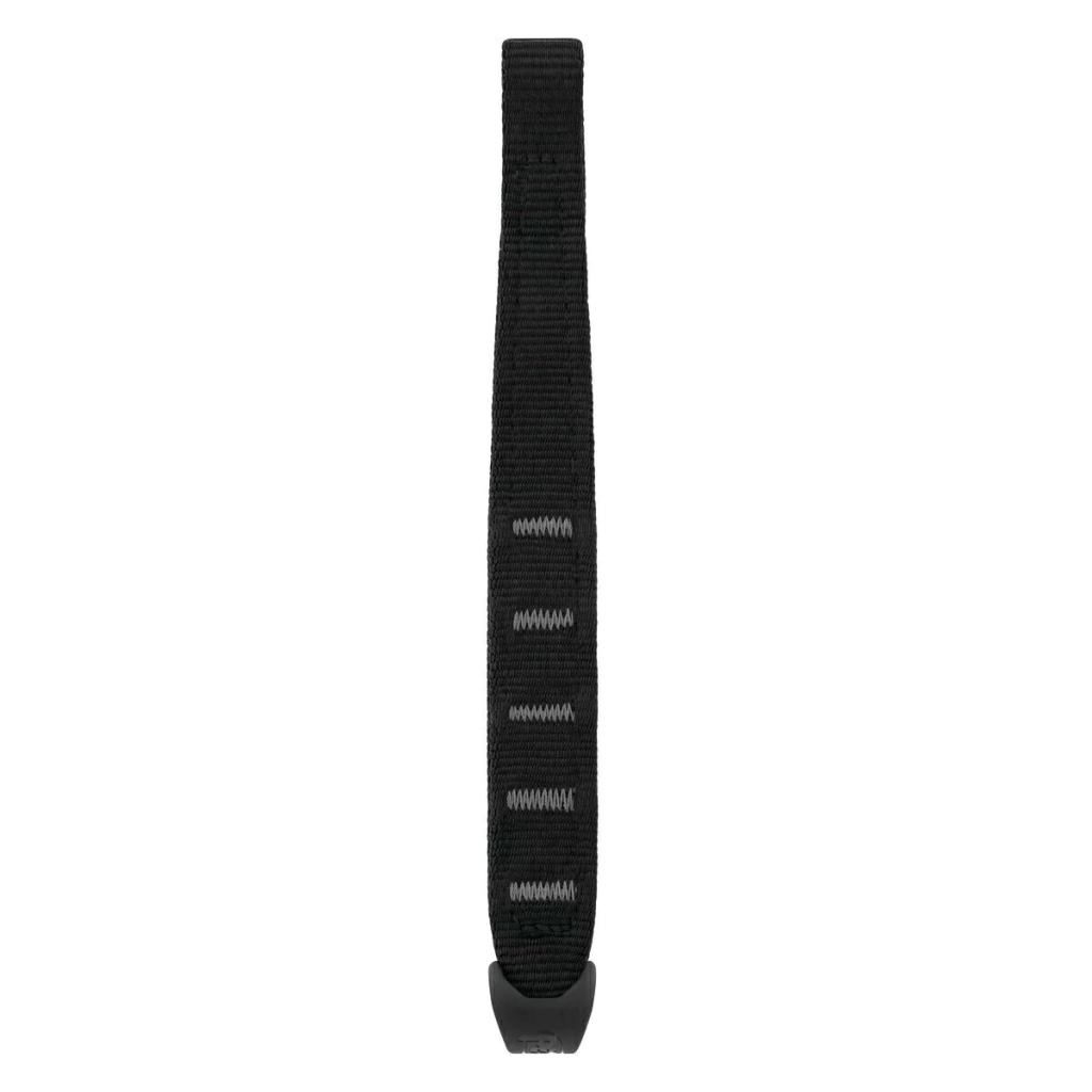 Extremo inferior equipado con un string para estabilizar el mosquetón al mosquetonear y proteger la cinta de la abrasión.
