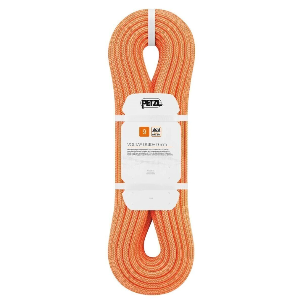 La cuerda VOLTA GUIDE 9mm ofrece la extrema ligereza y la compacidad necesarias para el alto nivel en pared así como la flexibilidad y el tratamiento hidrófugo más completo para el alpinismo. Incorpora el tratamiento Guide UIAA Dry que le proporciona una excelente resistencia a la humedad, especialmente adaptada para una utilización diaria en condiciones extremas. Gracias a su sujeción con la mano y su manejabilidad, se facilitan las manipulaciones. Está disponible en varias longitudes según la utilización prevista, de 30 metros para alpinismo clásico a 100 metros para las vías largas en pared.