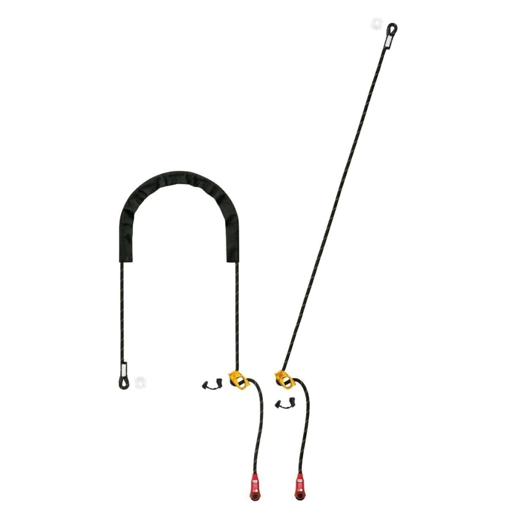 - Se utiliza en simple con el bloqueador adjust posicionado en el punto de enganche ventral del arnés, cuando el anclaje está situado por encima del usuario, de forma que la carga se reparta entre la cintura y los muslos para más comodidad.